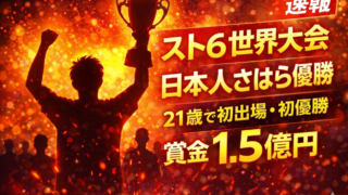 ストリートファイター6世界大会「CAPCOM CUP 12」で日本の21歳プロゲーマー・さはらが初出場で優勝。賞金100万ドル(約1.5億円)を獲得した快挙や大会概要、決勝結果、使用キャラなどを詳しく解説します。