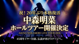 中森明菜が20年ぶりとなるホールツアー『AKINA NAKAMORI LIVE TOUR 2026』を開催。東京・大阪・名古屋の全5公演で、誕生日の東京国際フォーラム公演も決定。45周年イヤーを前にした待望の復活ライブの詳細や日程、チケット情報をまとめます。
