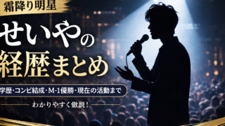 せいやの経歴をわかりやすく解説。学歴や霜降り明星の結成、M-1優勝、現在の活動まで初心者向けにまとめています。